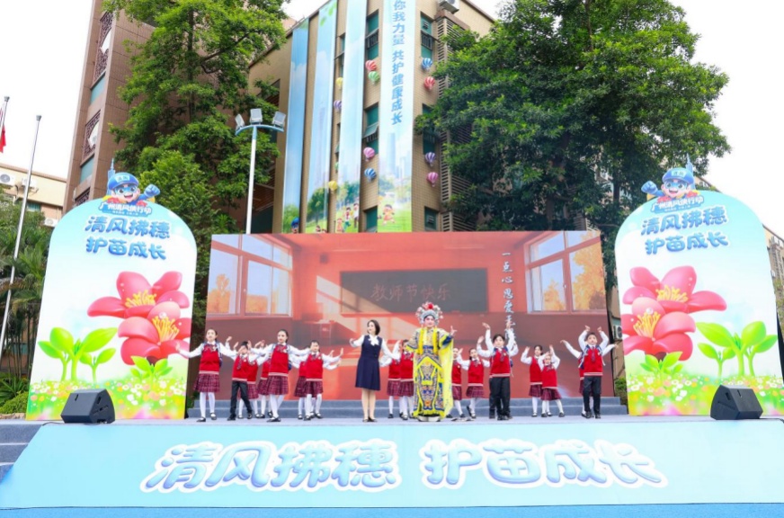 在文艺展演中,科学城小学合唱团唱响《守一扇心窗》,唱出十年护苗守望;荔湾区粤剧曲艺协会带来《清风扫浊音》,将冲击非法出版、法律知识融入非遗粤剧;玉鸣小学护苗戏曲《时刻都去哪了2.0》,引导青少年拒沉浸、善用AI……寓教于乐的精彩展演,让“护苗”的种子在欢声笑语中深植童心。