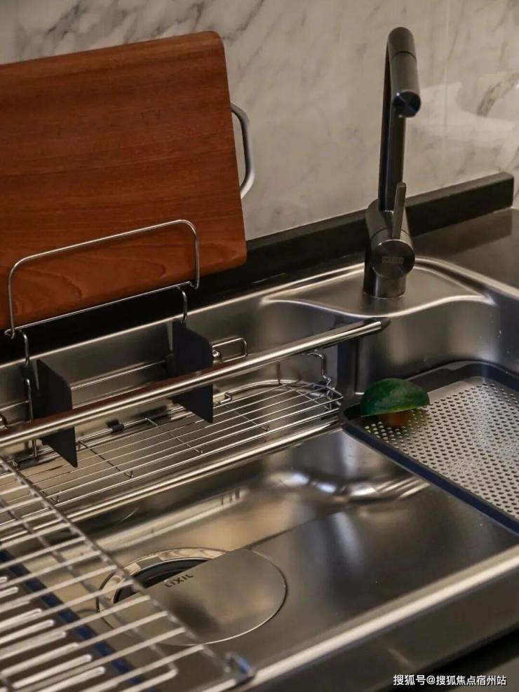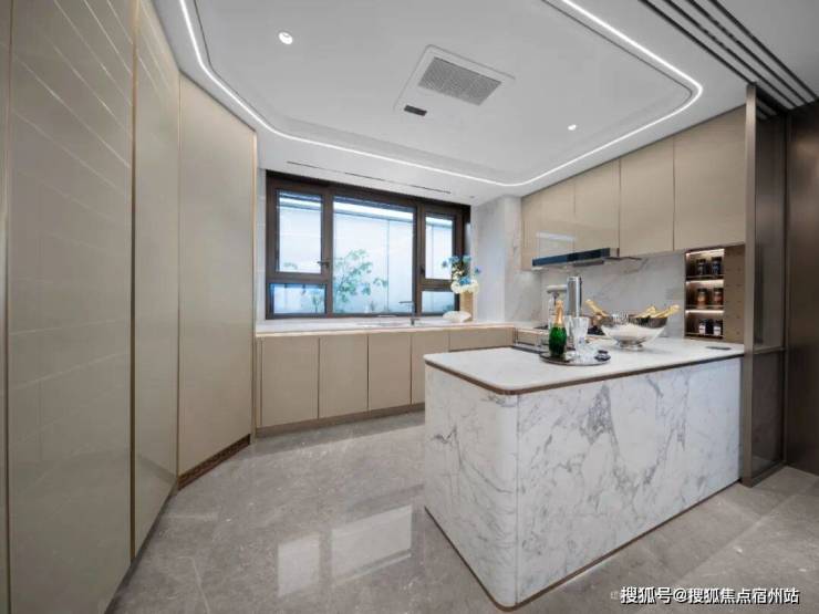 这样的规范,让多人一起操作毫无拥堵感:半敞开式的规划,中餐的煎炒煮炸,西餐的高雅沉着,一键切换。一起日子的亲属可围坐岛台煮上一壶咖啡、吃个慵懒的早餐或下午茶也很不错。