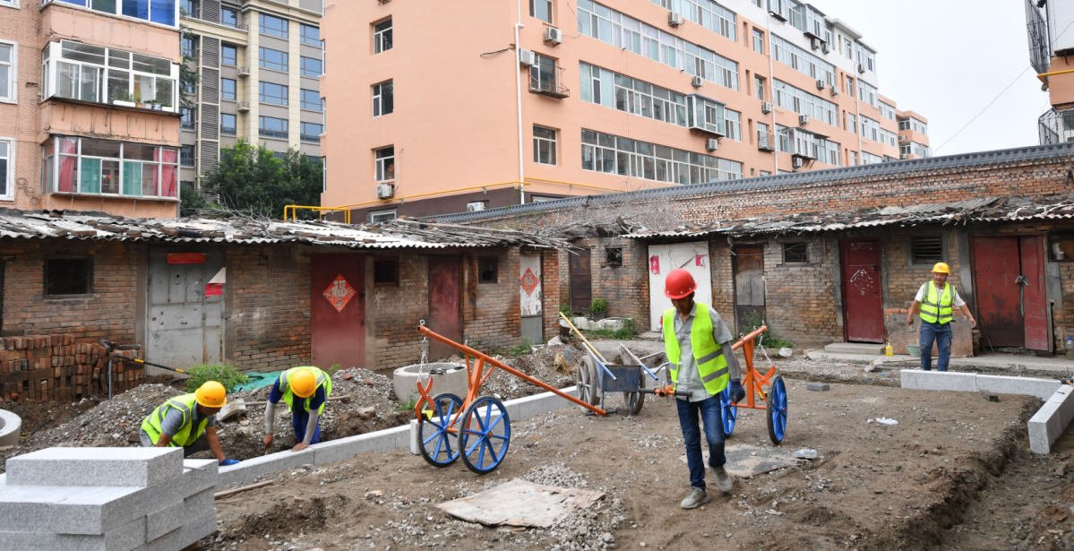 针对老旧小区改造需统筹居民生活的特色,项目团队拟定了精密施行工程的计划。团队优先完成了包含雨污管道、强弱电、采暖等一切地下工程。现在,小区路途在进行路面平坦和水稳层铺设。